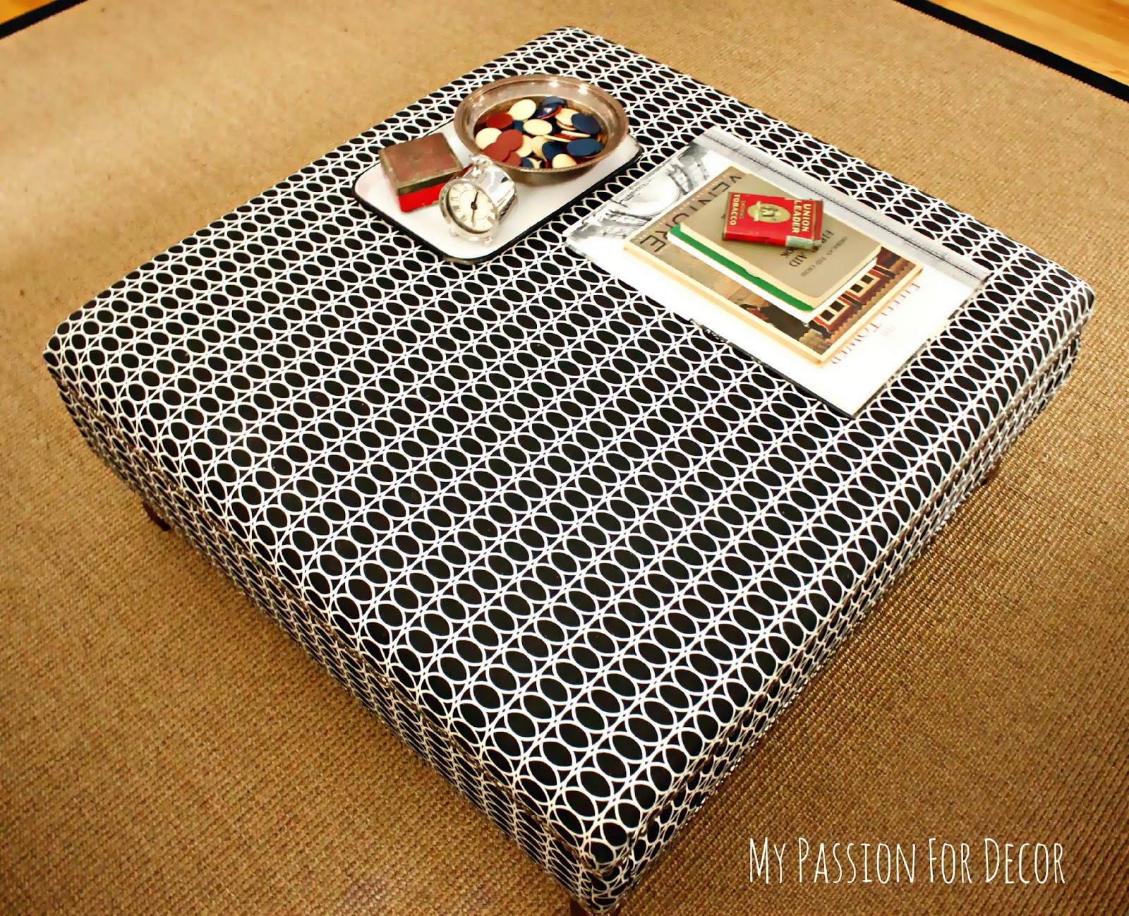 The last thing I really want to point out is this amazing ottoman the hubby and I built from scratch!! This is our first project we've ever done together using power tools, without arguing. I had a lot of fun working with him, but it was a stretch for him to adapt to my 'go with the flow' way of building. He likes to use plans, I like to just wing-it! It all worked out in the end and we had a great bonding time.